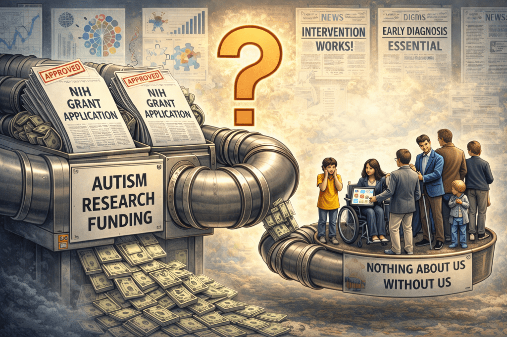 In this particular study, we will unpack whether the NIH-funded aims align with what autistic people have asked for, whether the findings meaningfully change decision-making for families, and whether the public translation of the paper reflects its scientific framing. We will examine who funded it, what the grant promised to deliver, what the paper actually delivered, and how the findings are being leveraged in media and policy contexts. The central question guiding this audit is simple: does this research materially improve the lives and autonomy of autistic people—or does it primarily reinforce existing intervention narratives without clear consumer benefit?